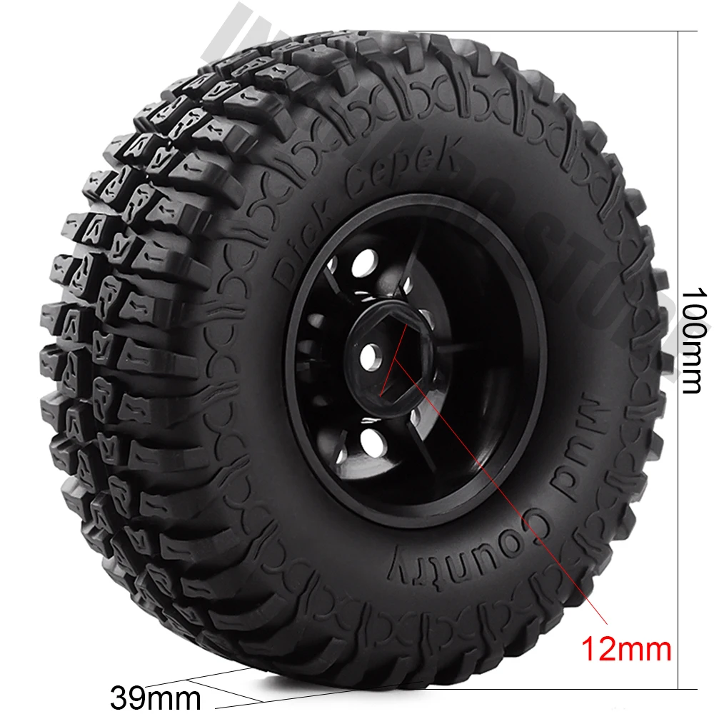 1.9 inch 4Pcs/Set Rubber Tires&Plastic Wheel Rim for 1:10 RC Rock Crawler Axial SCX10 90046 Tamiya