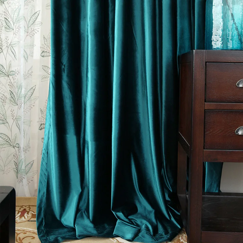 HIGH QUALITY Modern Simple Style Solid Color Royal Blue Luxury Velvet Window Curtains for Living Room Bedroom Lu