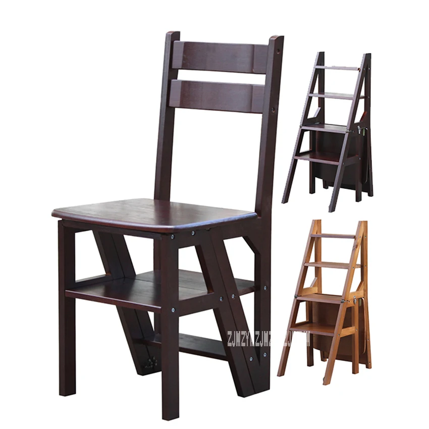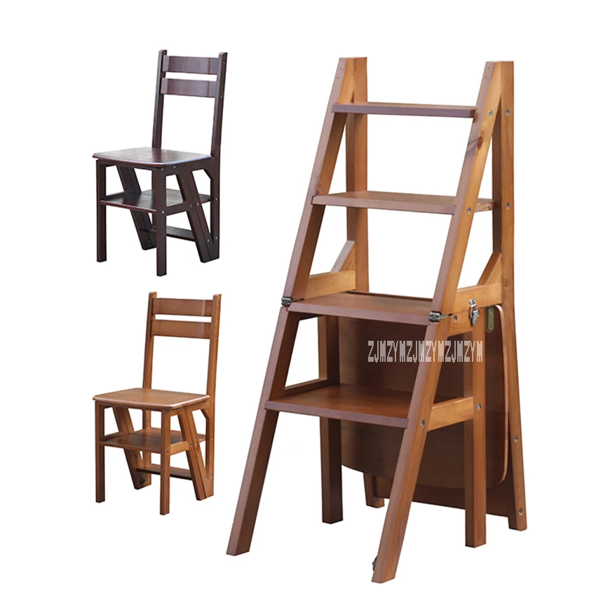 HIGH QUALITY Multi-functional Four-Step Library Ladder Stool Solid Wood Ladder Chair Household Folding Wooden Ch